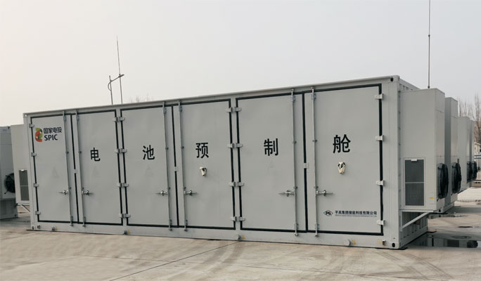 電池儲(chǔ)能預(yù)制艙包括:電池艙體,電氣艙、電池架消防通道。電池艙和電氣艙安裝消防和監(jiān)控系統(tǒng),電池艙頂部安裝多組散熱系統(tǒng),電氣艙設(shè)有逆電池儲(chǔ)能預(yù)制艙包括:電池艙體,電氣艙、電池架、變器。通過(guò)電池管理系統(tǒng)對(duì)電池組的管理,可實(shí)現(xiàn)作為消防通道。電池艙和電氣艙安裝消防和監(jiān)控系統(tǒng),電池備用電源而實(shí)現(xiàn)儲(chǔ)能電站的功能。電池儲(chǔ)能預(yù)制艙成套艙頂部安裝多組散熱系統(tǒng),電氣艙設(shè)有逆變器。通過(guò)電性強(qiáng),系統(tǒng)簡(jiǎn)單,體積小,移動(dòng)性高,對(duì)環(huán)境適應(yīng)性強(qiáng),運(yùn)行安全池管理系統(tǒng)對(duì)電池組的管理,可實(shí)現(xiàn)作為備用電源而實(shí)可靠。